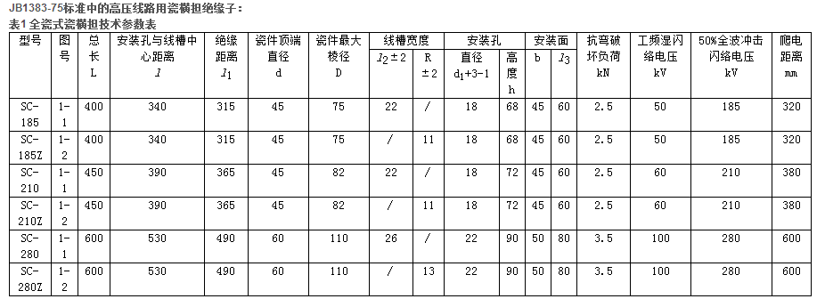 瓷横担绝缘子的电气、机械性能与相同电压等级的普通线路绝缘子相比较,特点是: